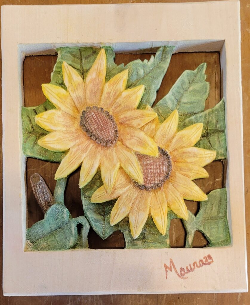 John Griscti – Chip Carving -All 4 days- Students will learn to identify the differences between various Chip carving knives, and what features are best for the beginner and advanced chip carver. Each student will learn the correct way to hold their knife and will then start carving several basic designs. Each student will then progress to more complex designs such as rosettes – Both advanced and beginner chip carvers are welcomed. There will be different projects to choose from. Pictures below are samples of John’s Chip Carving projects. One of the advanced projects this year is the sunflower.